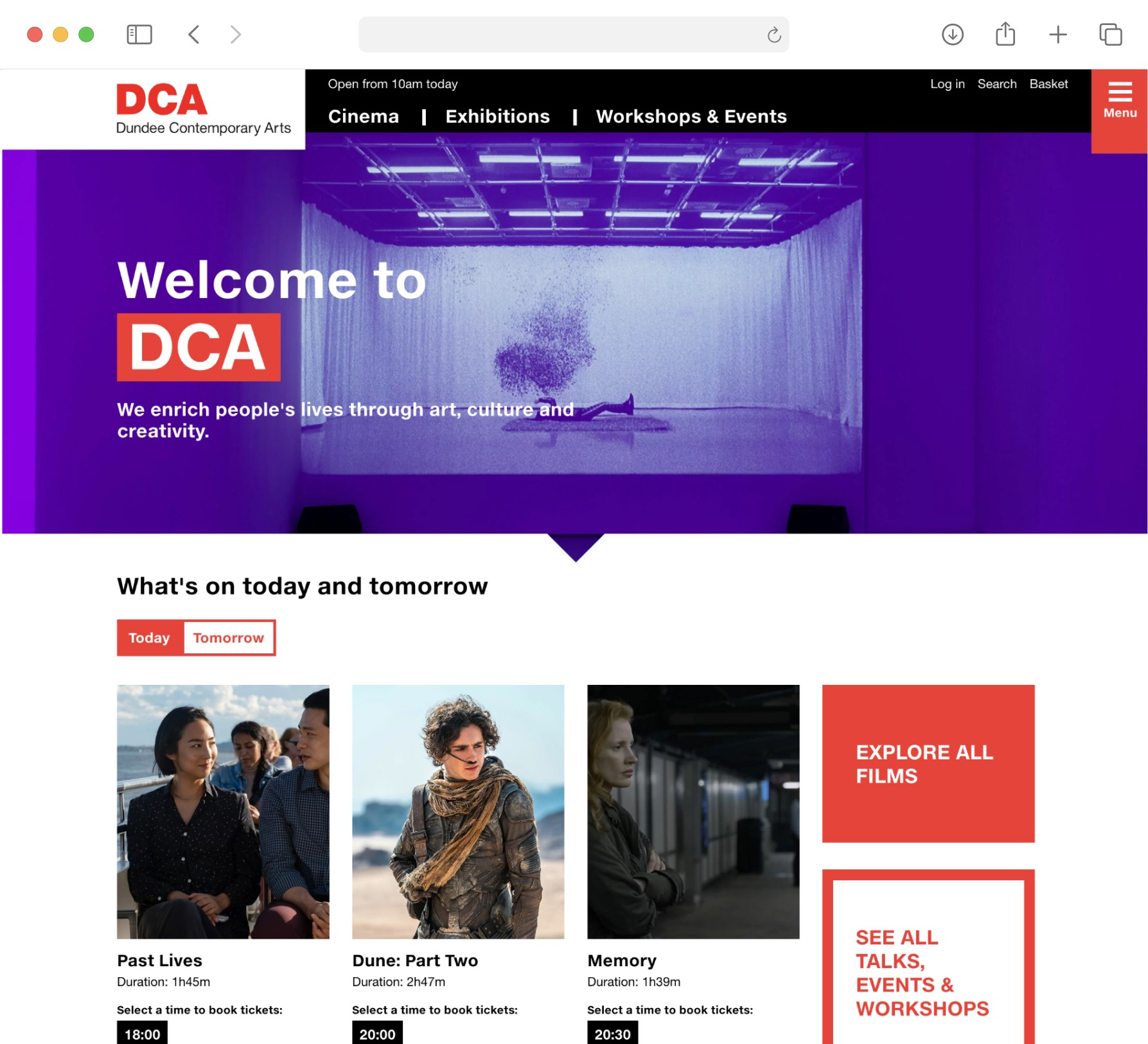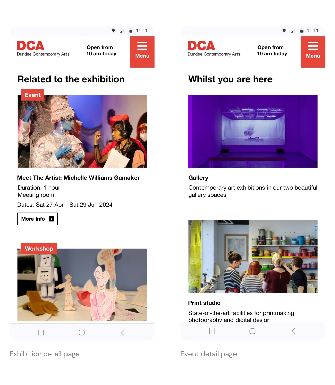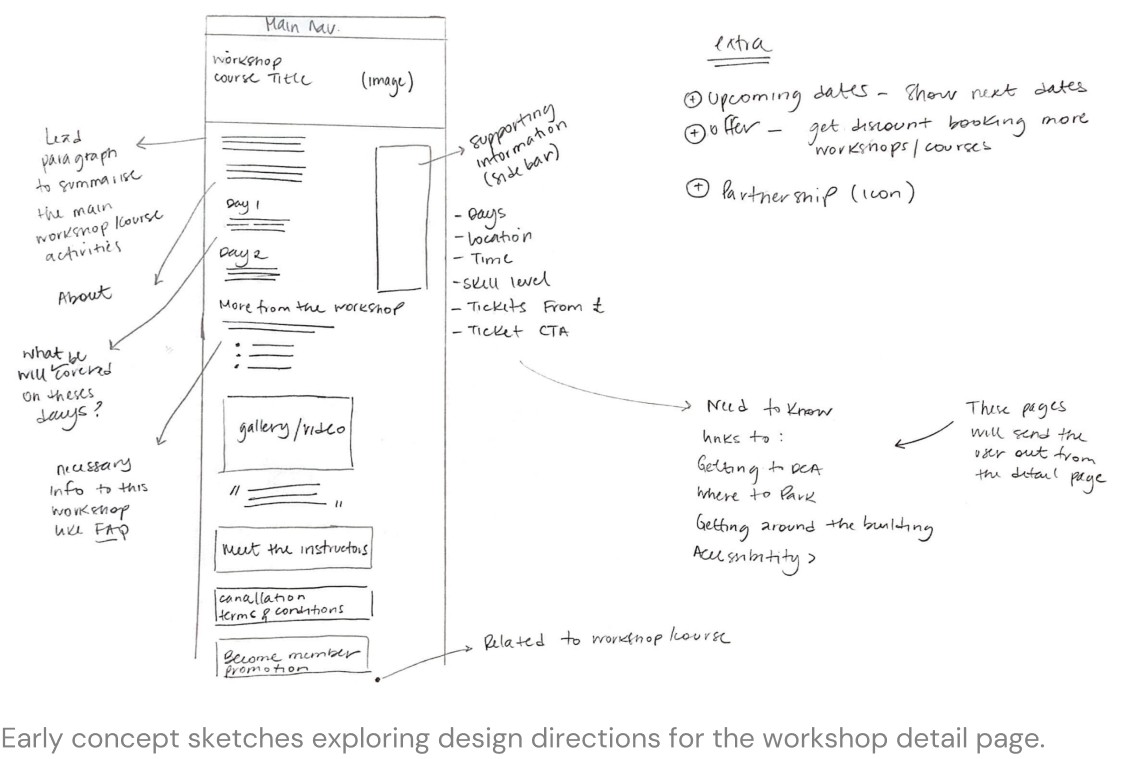 DCA is a cultural hub offering a diverse range of creative experiences across visual art, craft, film, and more through various formats like events, workshops, classes, and activities for all ages. I embarked on this comprehensive redesign project with exciting opportunities to enhance content discoverability and user engagement, while creating pathways for visitors to explore the art center's full breadth of offerings.