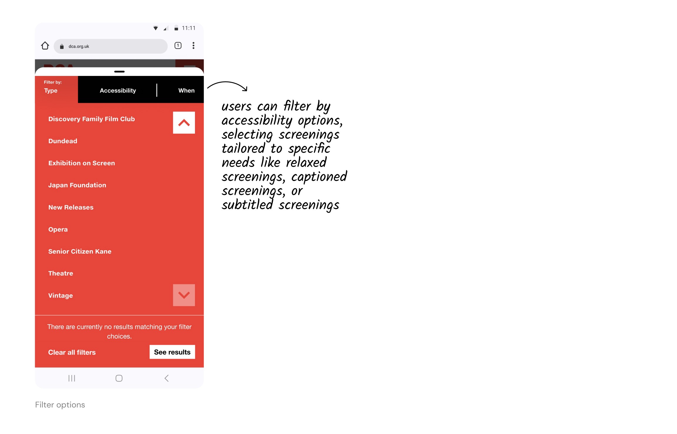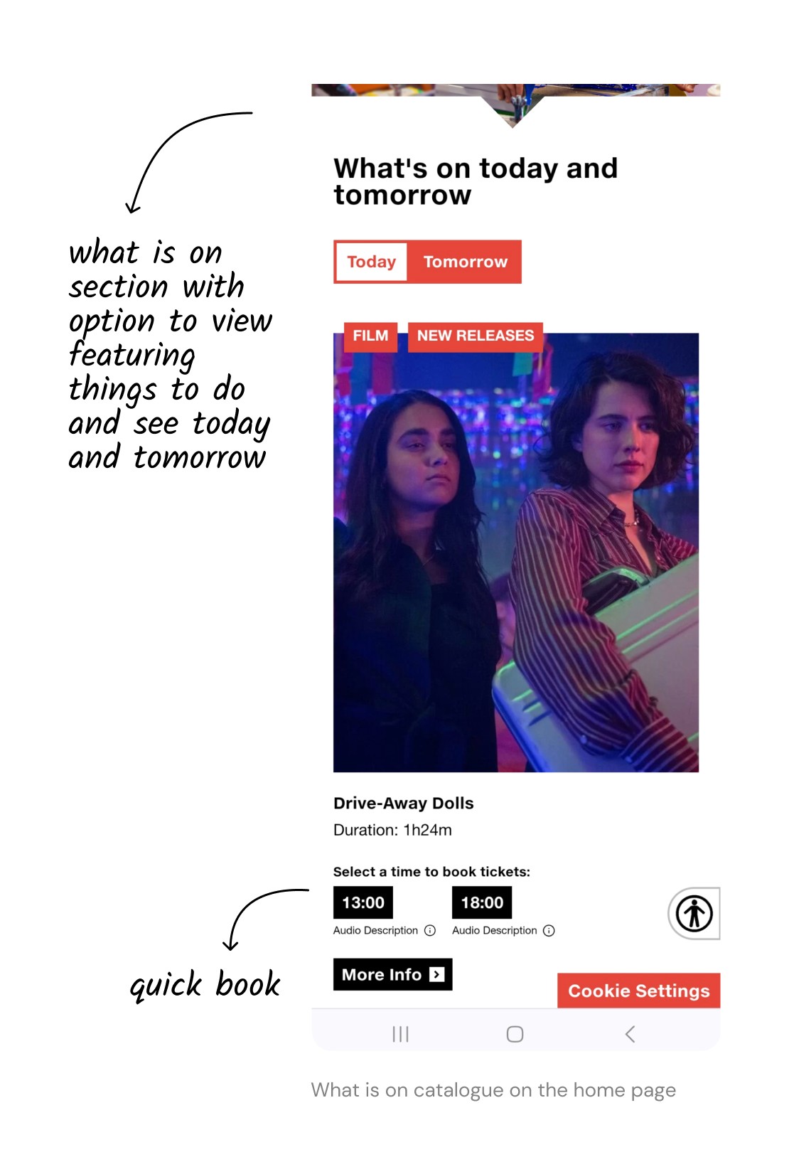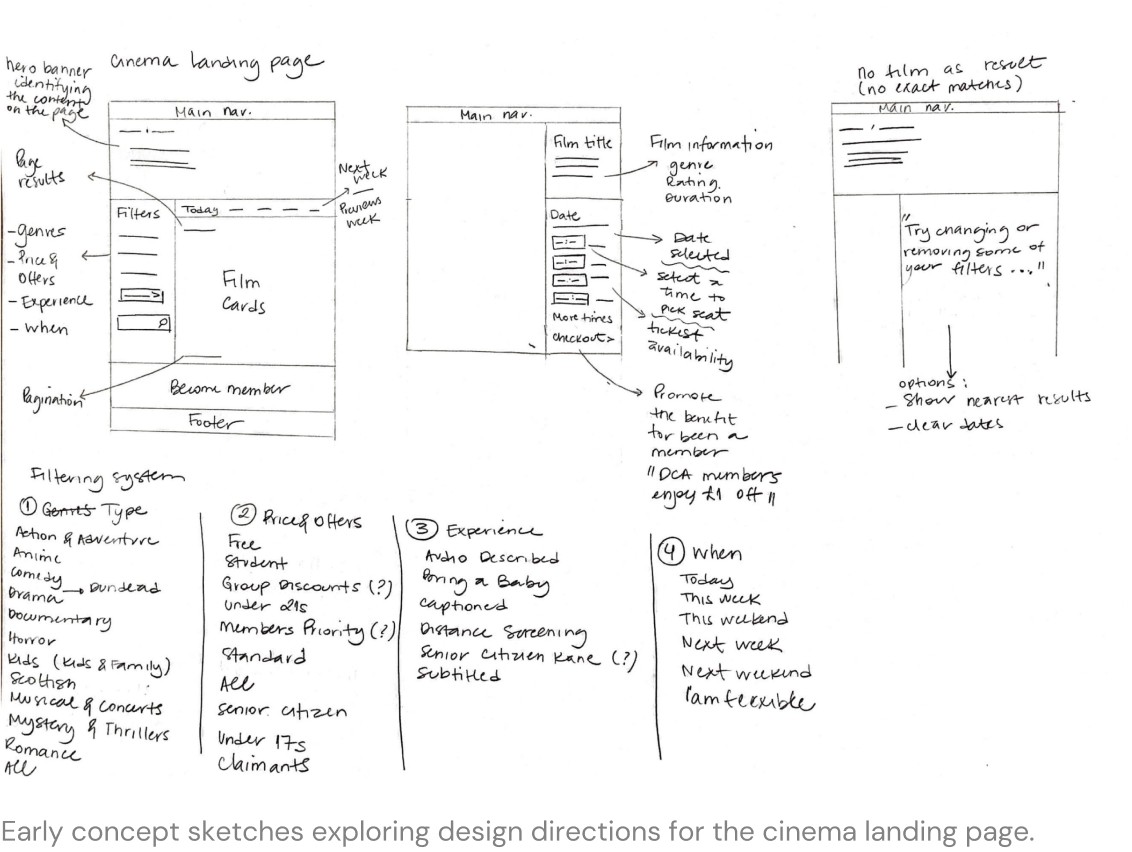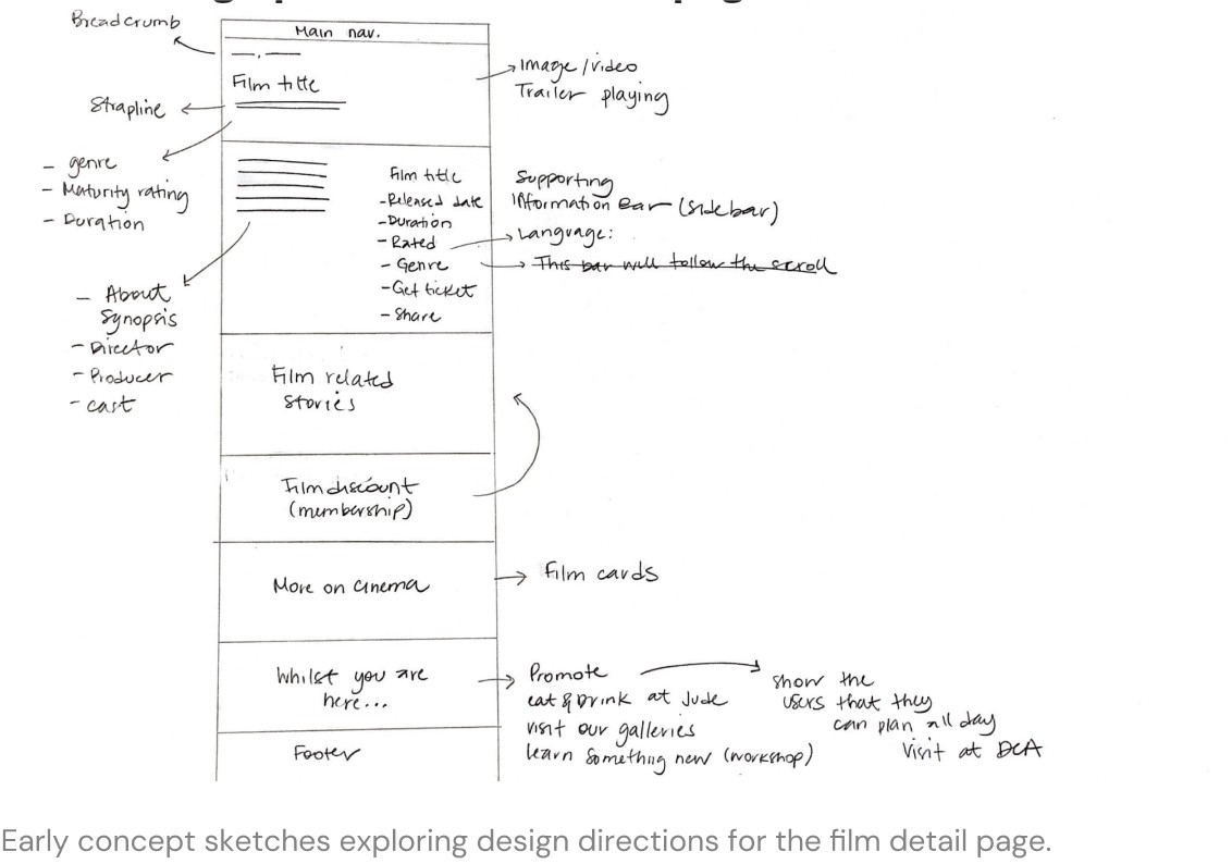 Initially testing the homepage and detail pages allowed us to gauge how well the designs catered to the common user intent of simply finding a film to watch. We then tested the search, filtering, and booking process to ensure users could seamlessly select dates/times for their chosen film.